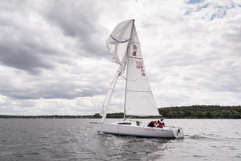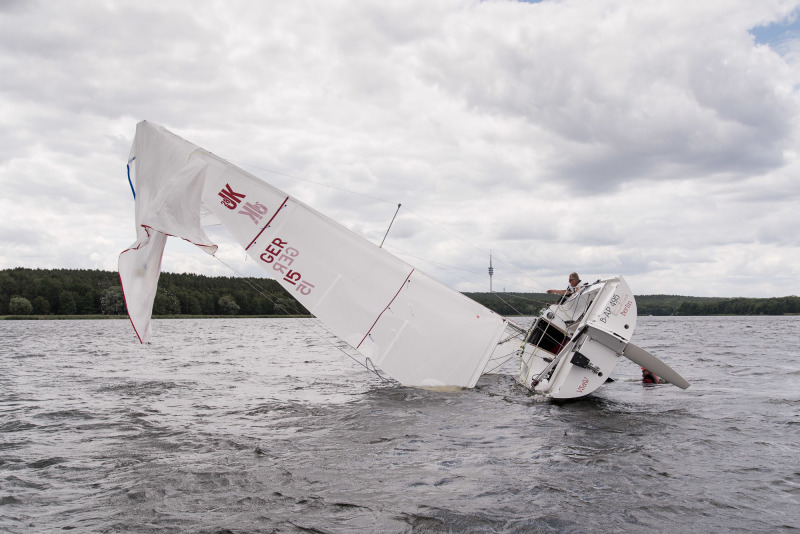 Was lernen wir daraus? Zunächst, dass ordentlich Wind plus Bedienfehler den JK28 wirklich umwerfen können. Der Gennaker wurde gesetzt, die Tackleine war lose, die Gennakerschot war belegt, der gesteuerte Kurs zu hoch und die Bö zu kräftig. Da hat der Gennaker Wind gefasst und das Boot zur Seite umgerissen. Das Schwert sollte gesichert sein! Alle Inspektionsdeckel der Innenstruktur sollten geschlossen sein!